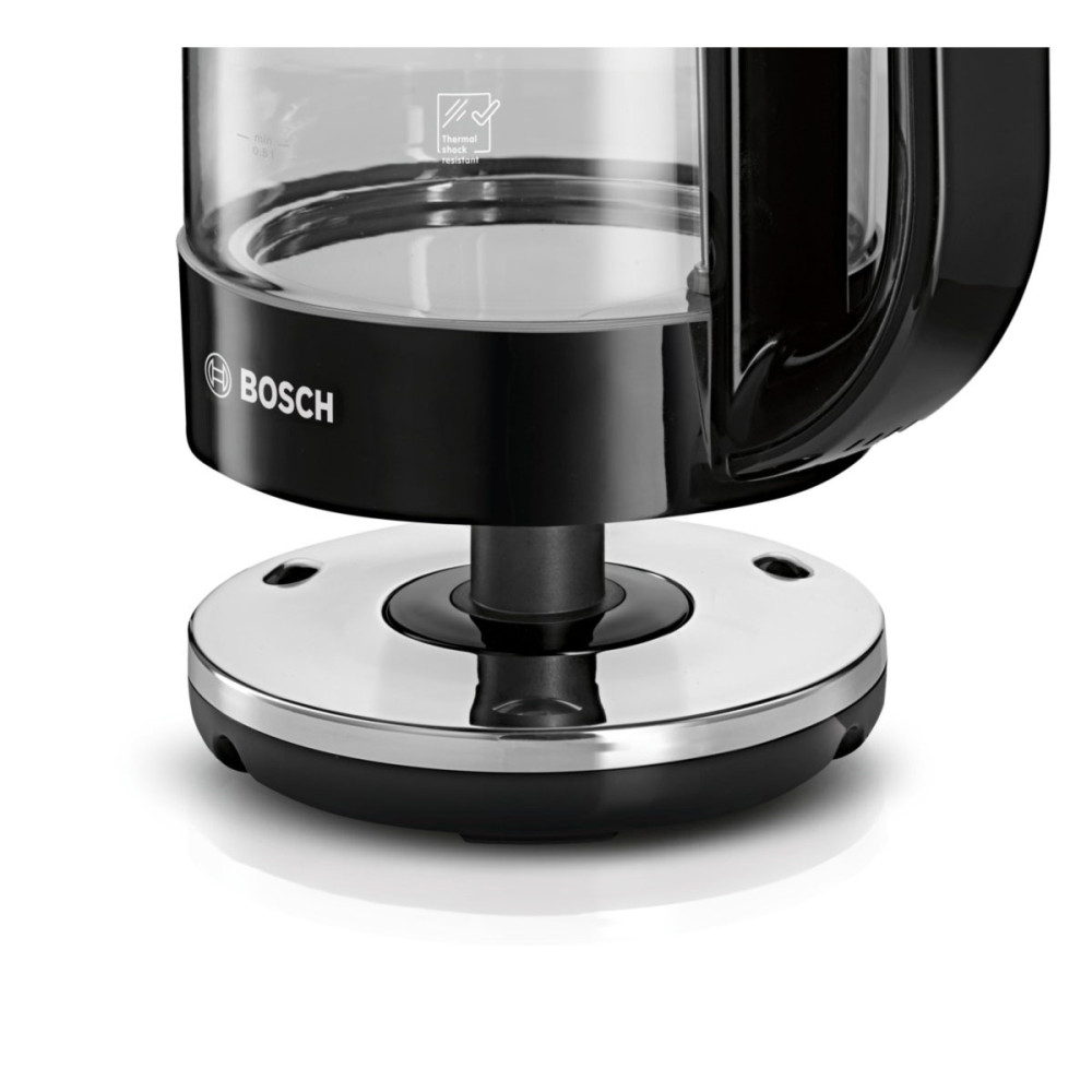 Чайник Бош на 1,7 л з термостійкого скла. Триступенева система захисту. Зручність у користуванні завдяки кнопці від чинення кришки