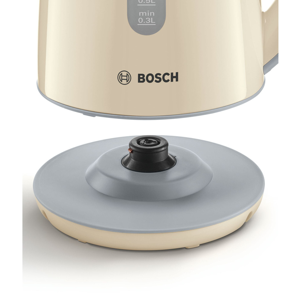 Чайник Бош на 1,7 л. з триступеневою системою захисту. Можливість закип'ятити одну чашку води (300 мл). Захист від перегрівання та увімкнення без води. Стійкість завдяки гумовим ніжкам