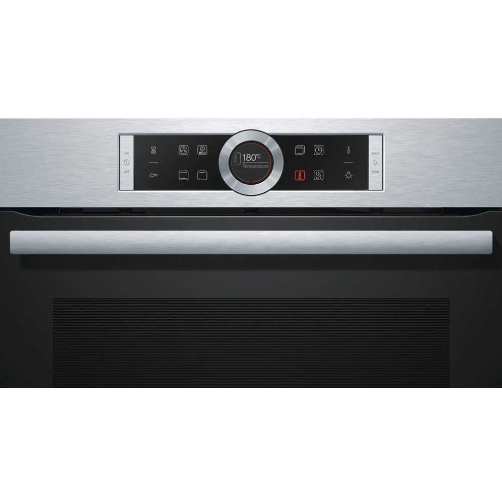 Вбудована електрична духова шафа Бош XXL з покриттям TitanEmail Нержавіюча сталь. 10 видів нагрівання, 4D. Кольоровий TFT-дисплей (2,5“) з сенсорними кнопками. Задня стінка з покриттям ecoClean.