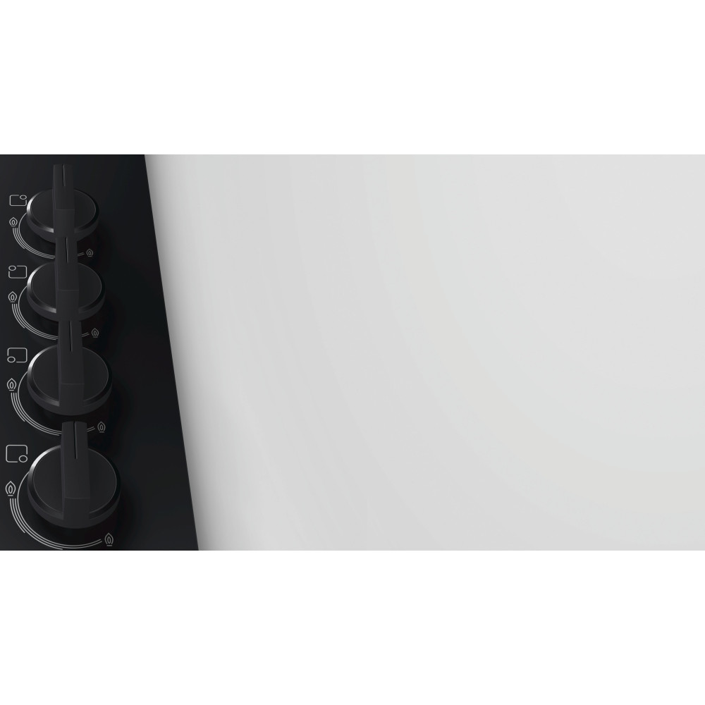 Газова варильна поверхня з перемикачами на 60 см. чорного кольору. 4 газові конфороки: 1 конфорка підвищеної потужності, 2 стандартні конфорки, 1 економічна конфорка. Термоелектричний захист від витікання газу.