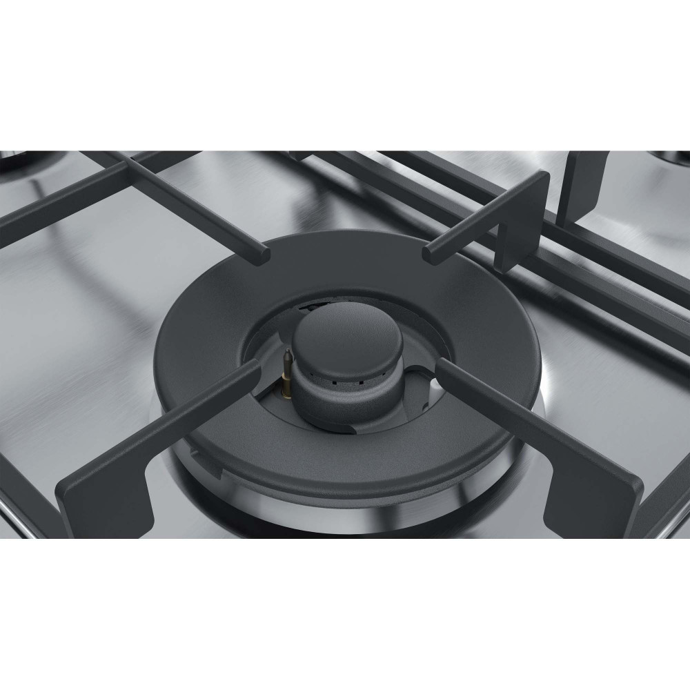 Газовая поверхность Сименс 60 см нержавеющая сталь на 4 конфорки. Чугунные решетки с резиновыми ножками. Автоматический электроподжиг.