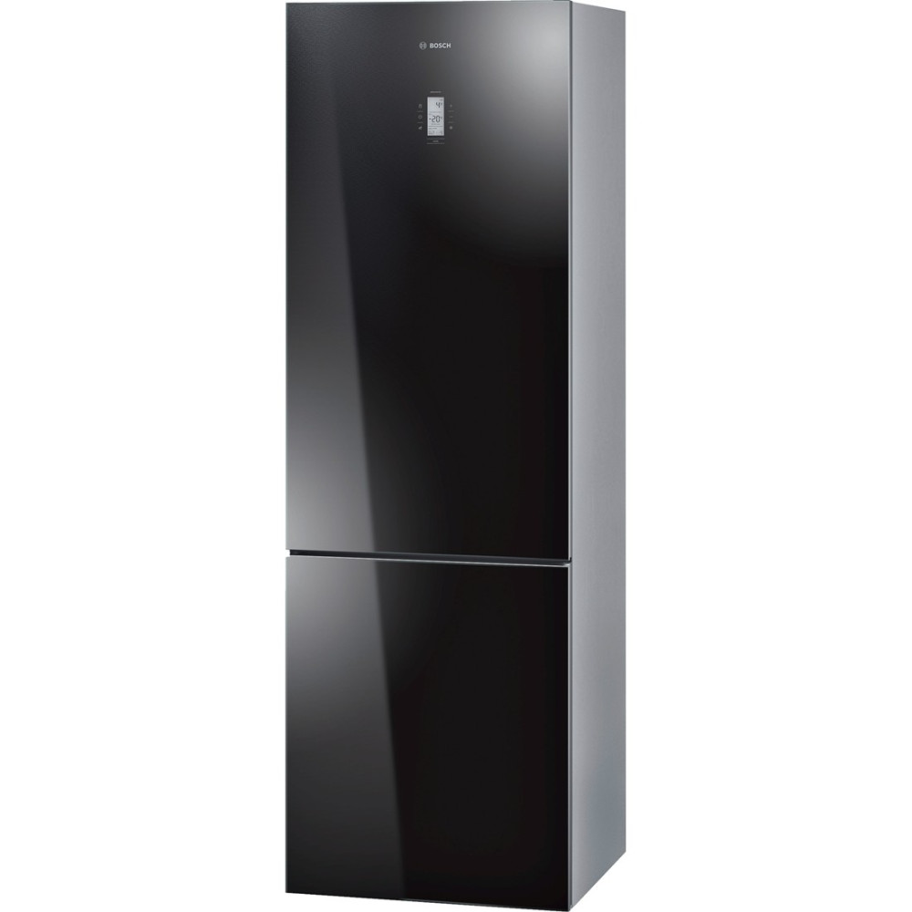 Двухкамерный холодильник Бош со стеклянной черной дверью и серебристым корпусом. Система NoFrost (Ноуфрост) не требующий разморозки. Высота 185 см. Електронная регулировка температуры отображающаяся на ЖК - дисплее двери. Система равномерного многопоточного охлаждения Multi Airflow. Функция быстрого замораживания Super Freezing с автоматическим отключением
