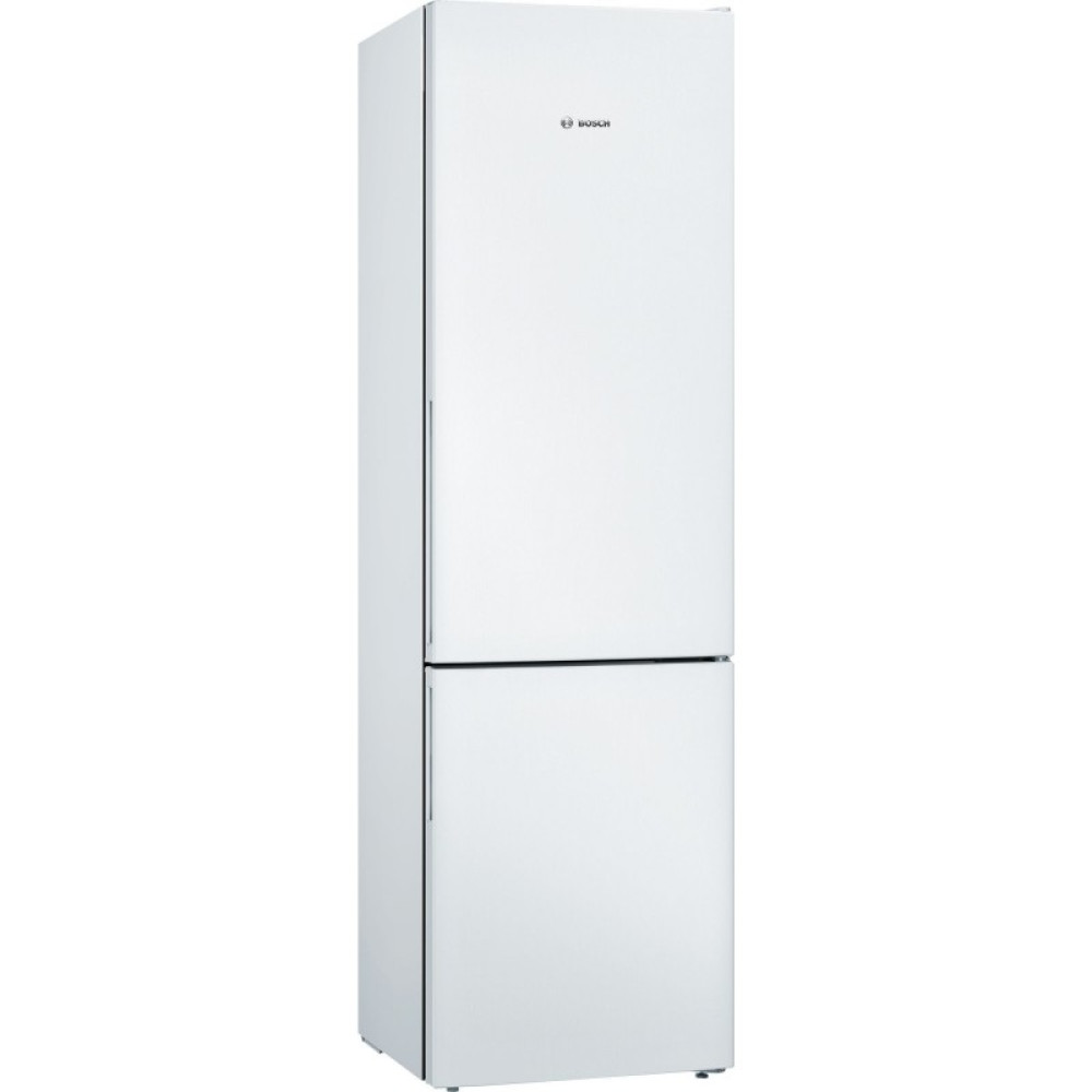 Холодильник Бош Serie 4 з нижньою морозильною камерою у білому кольорі. Електронне регулювання температури зі світлодіодною індикацією. Автоматичне розморожування у холодильній камері. Tехнологія Low Frost дозволяє уникнути намерзань льоду та значно рідше розморожувати прилад. Зона свіжості VitaFresh Box, Crisper Box для зберігання овочів та фруктів.