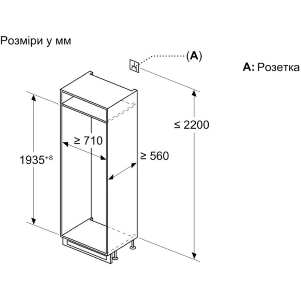 Размеры прибора (ВхШхГ): 194x71x55 смРазмеры ниши для встраивания (ВхШхГ): 194x71x56 см
