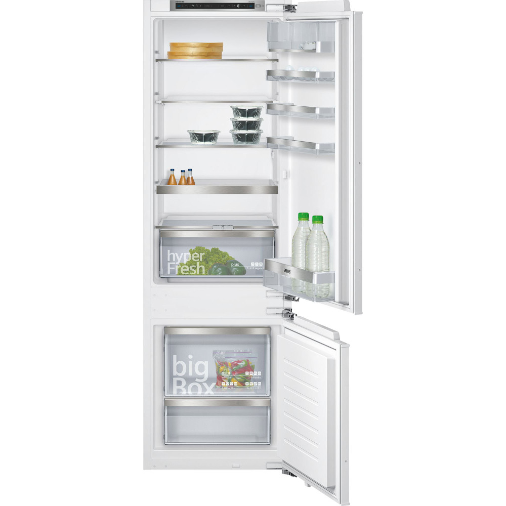 Встраиваемый холодильник Сименс iQ500 с нижней морозильной камерой. Тип крепления двери к мебельного фронта – фиксированный. Отделение hydroFresh с регулировкой уровня влажности. Технология LowFrost - меньше льда, больше свежести. Сенсорная электроника touchControl. VarioZone - оптимальная эргономика внутреннего пространства благодаря стеклянным полочкам и боксам, что легко вынимаются.
