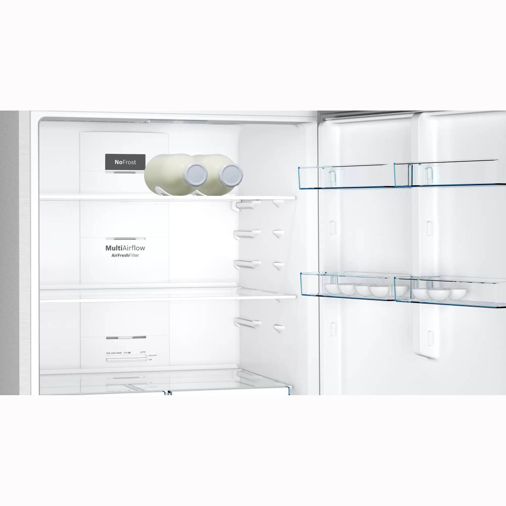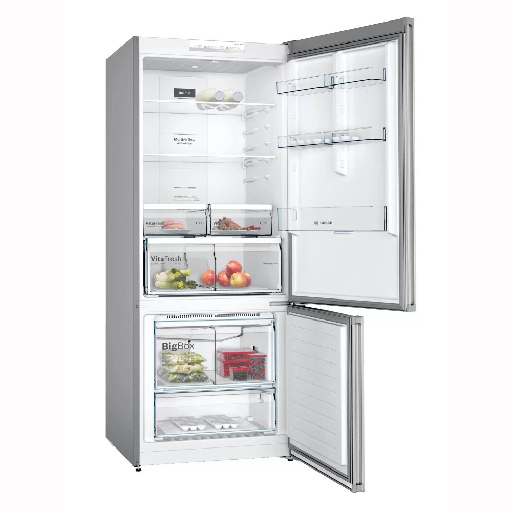 Холодильник Бош XXL розміру на 521 літр в нержавіючої сталі з Antifingerprint. Розташування морозильної камери нижнє. Оптимальна організація внутрішнього простору морозилки. Електронне регулювання температури. Технологія від намерзань NoFrost. Зона свіжості VitaFresh для довгого зберігання продуктів свіжими, завдяки підтримці мінімальної температури та оптимальної вологості повітря. Полки easyAccess Шановні покупці, просимо звернути увагу при здійсненні покупок! Ми здійснюємо доставку холодильників тільки по Києву і області, в межах 40 км від межі міста.