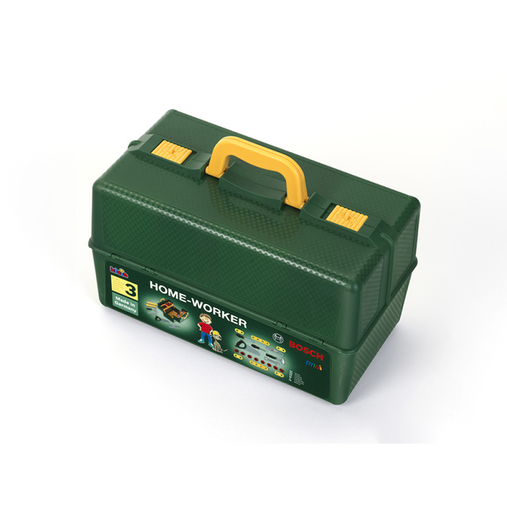 Ігровий набір домашнього майстра Бош: все необхідне для маленьких майстрів в кейсі. Міцний кейс із зручною ручкою для перенесення, реалістичний міні інструмент: молоток, викрутка, напилок, пила, гайковий ключ і рівень. З таким кейсом кожен хлопчик відчує себе справжнім майстром, а безліч аксесуарів дають можливість юному помічникові потренуватися, відпрацювати навички та пофантазувати. Аксесуари в комплекті: 2x довгі планки, 4x короткі планки, 8x болтів з гайками.