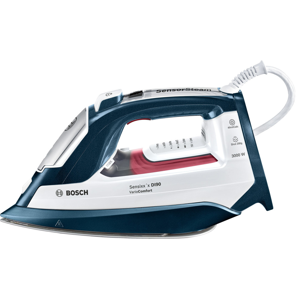 Парова система Бош Sensixx'x DI90 VarioComfort: простий, легкий і потужний спосіб досягти від мінних і глибокому проникненню пари. VarioComfort: прасувальні програми для ідеальних результатів.Програми прості та інтуїтивно зрозумілі. MotorSteam: пара проникає глибше в тканину завдяки вбудованому двигуну.Паровий удар 200 гр.