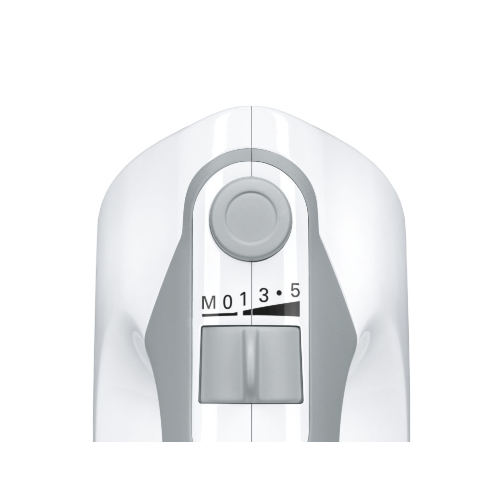 Міксер Бош з чашею: 5 рівнів потужності + турбо-режим. Можливість використання аксесуарів до блендеру. Потужність: 450 Вт. Окрема кнопка для від 'єднання віночків і гаків. Легкий в експлуатації