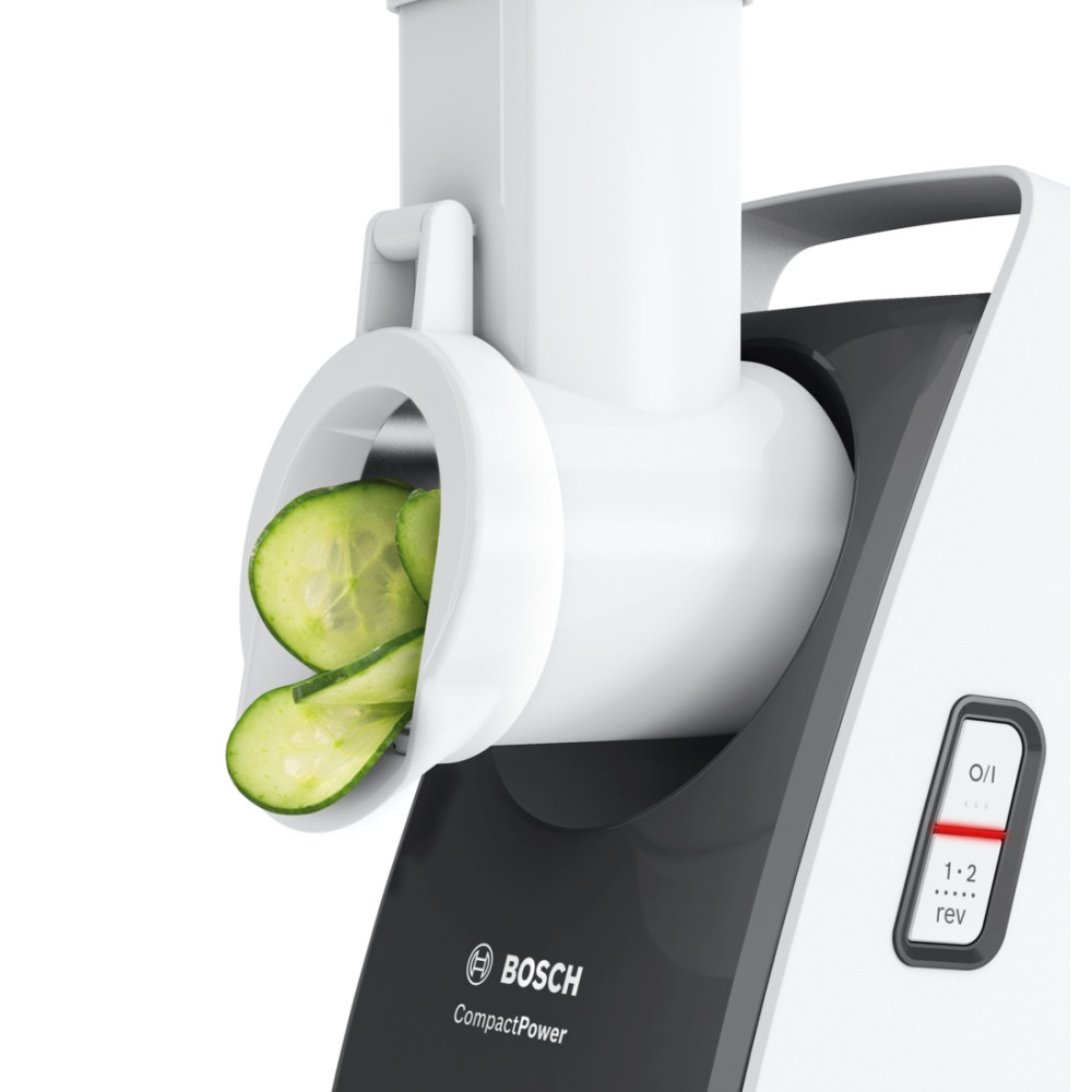 М'ясорубка Бош CompactPower - зручна і легка у використанні - завжди під рукою. Оригінальний дизайн з практичною ручкою для перенесення і місце для зберігання дисків і кабелю. Широкий діапазон опцій для приготування їжі - з додатковими насадками для приготування кебе і ковбасок.