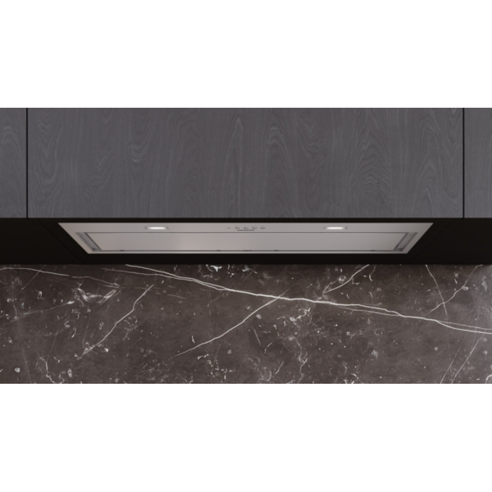Потужна витяжка гармонійно вбудовується у верхню шафу або цегляний димар.