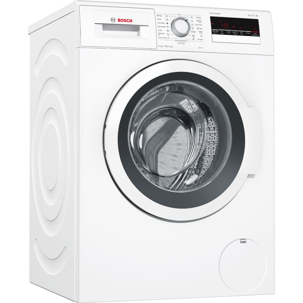 Автоматична пральна машина Бош Serie 4 на 7 кг. Електронний контроль виконання усіх програм прання, рівня температури та обраних додаткових опцій. Програмування часу завершення прання (від термінування на 1-24 год). Блокування приладу від дітей. Багаторівневий захист від протікання води.