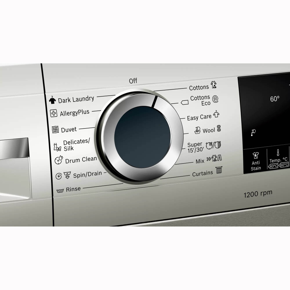 Пральна машина Бош Serie | 4 на 9 кг у кольорі silver inox. Eco Silence Drive: тиха робота і довговічність, на які ви можете покластися. Захист від протікання води AquaStop протікання води протягом усього терміну експлуатації. AntiVibration - стійкість і тиха робота завдяки особливому захисті від вібрацій. Функція VoltCheck: захист приладу і інформування користувача в разі від мови системи живлення або коливань струму. AntiStain Plus: надійне видалення 16 типів плям без додаткової попередньої обробки.