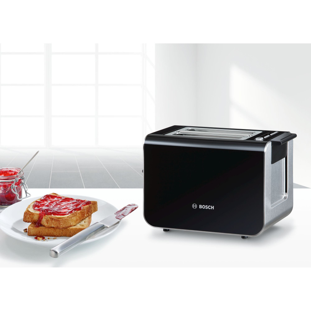Тостер Бош з 9 режимами приготування. Решітка з нержавіючої сталі для підсмажування булочок. Функція High lift для легкого видалення невеликих часточок хліба