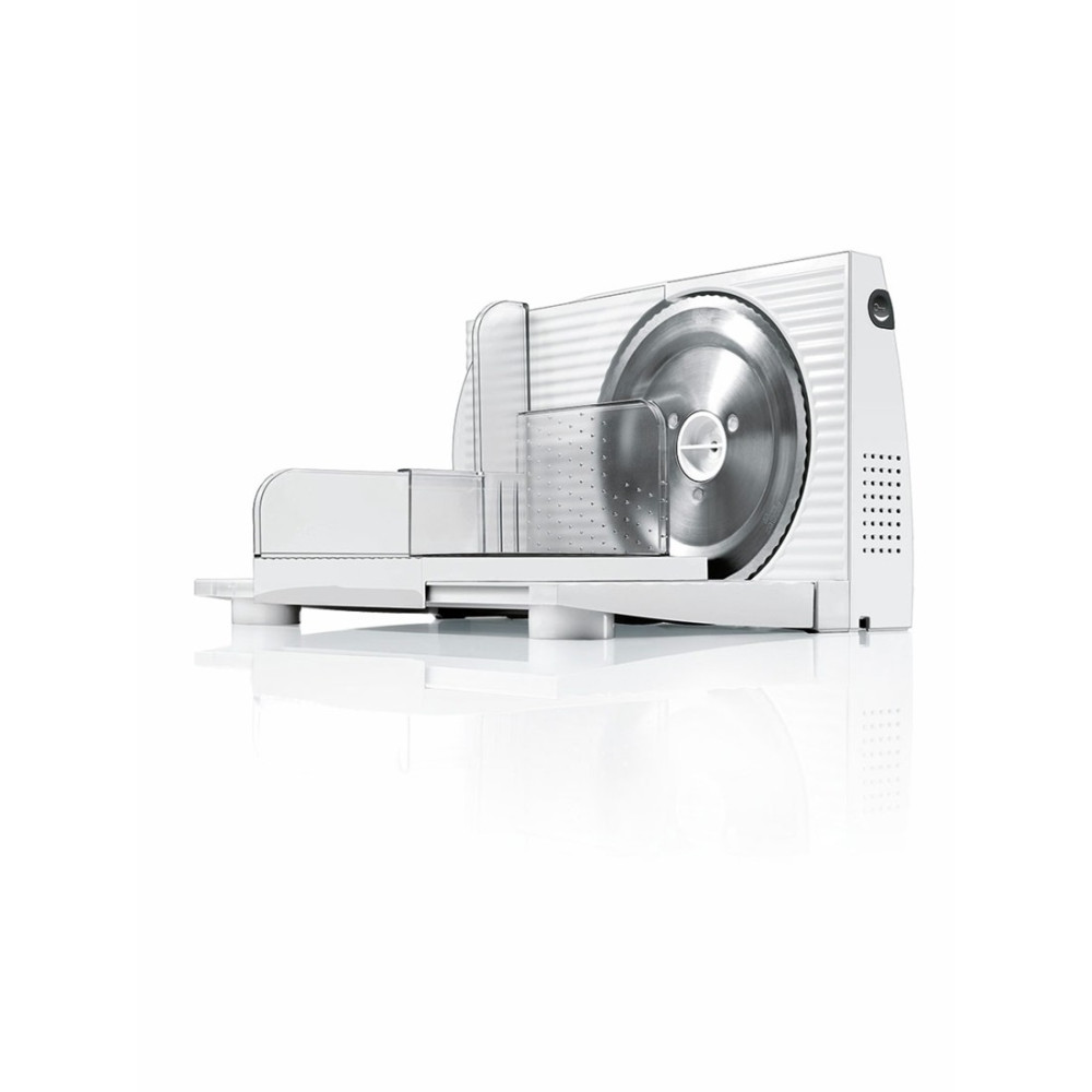 Ломтерезка бытовая. Мощность: 100 Вт. Импульсный режим. Защита від включения. Универсальный волнообразно заточен чем из нерж. стали. Определение ширины нарезки до 17 мм. Защита пальцев и держатель для продуктов. Устойчивость благодаря резиновым ножкам. Отсек для кабеля.