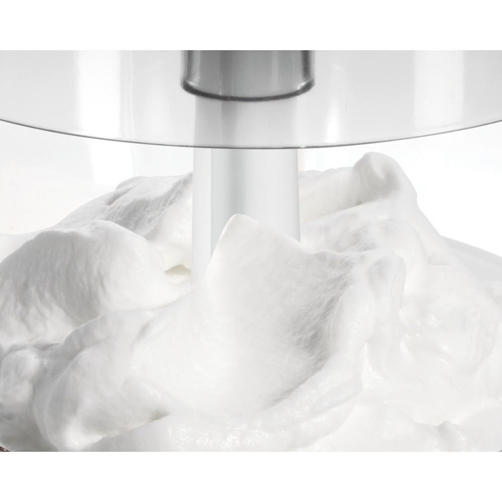Універсальний подрібнювач БОШ білого кольору з диском для збивання вершків або яєчних білків. Імпульсний режим - робота приладу при натисканні. Простий і зручний в застосуванні. Потужність двигуна 400 Вт. Чаша місткістю 800 мл, придатна для миття у посудомийній машині та для використання у мікрохвильовій печі